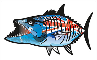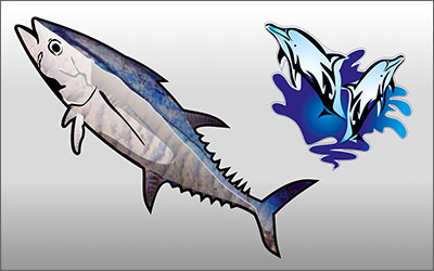 Fishing Stickers We also have stock stickers - Like the fish designs you see on this page - Just $35 for a large set (mirrored) about 400mmx400mm in size (sizes vary to shape) Postage cost is about $12 to anywhere in Australia.